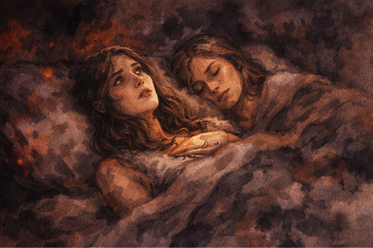 De mi volt ez? A kemény sorokat, amiket olvasni véltem, harangszó szakította félbe. Felültem. Még mindig az ágyban feküdtem. A hajnal pírja beragyogott az ablakon. A templomból be hallatszott az Ave Maria. Csak álom lett volna az egész?
